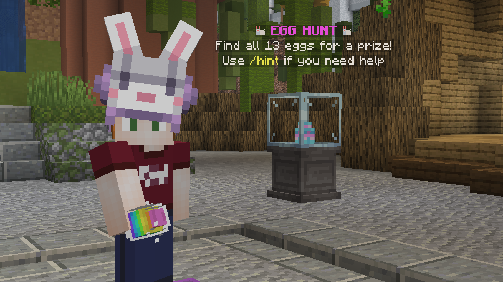 If you're having trouble finding an egg, no worries - just run the /hint command in the chat and you'll receive a special message to help you along your way.